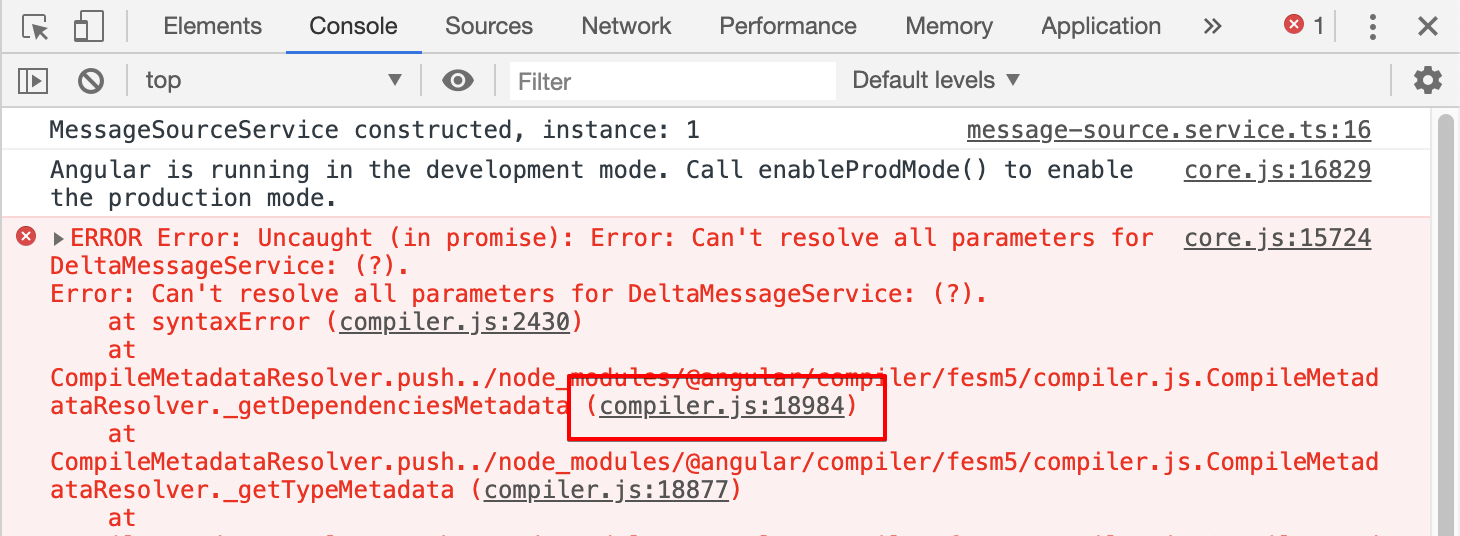 當我深入追查後,得知錯誤來自DI發現這個class type有其它的相依,但無法解析它是哪個class。