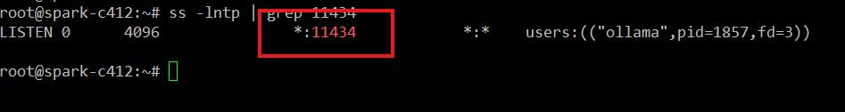 先在內部檢查socket 連線狀態,看到 *:11434 代表設定生效,Socket 正在11434 上監聽來自任何IP 的request
