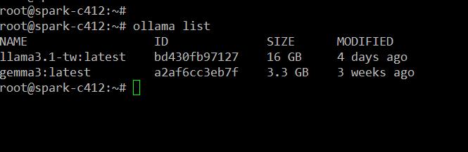 輸入 ollama list 可以看到現在有什麼模型可以呼叫
