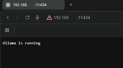 用同內網電腦的瀏覽器輸入網址 IP:11434,看到:Ollama is running 就代表Ollama 有在跑