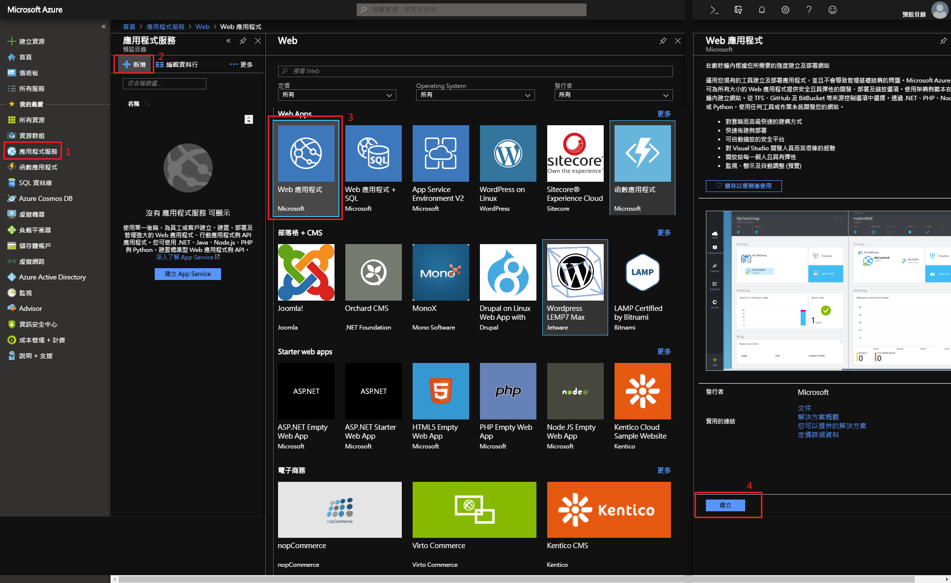 6. 資訊確認無誤後,就可以點選下方建立按鈕請求Azure把我們的應用程式建立起來。