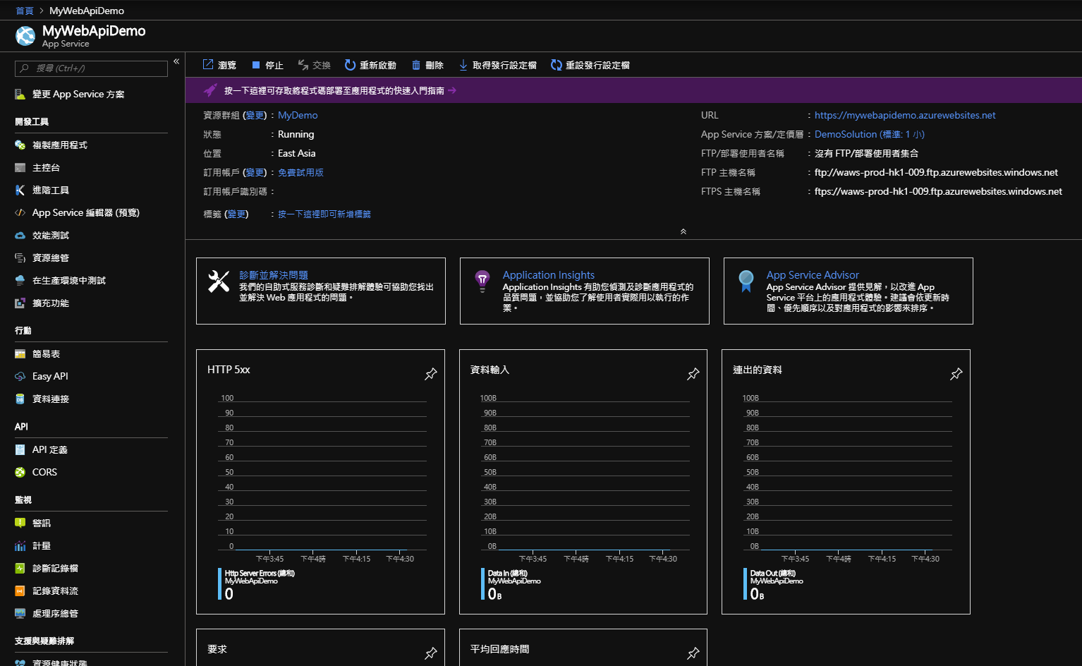 7. 等待 Azure 將我們的服務部屬完成後,即可前往資源查看我們剛剛建立的應用程式。
