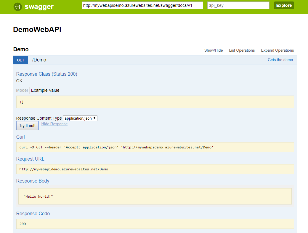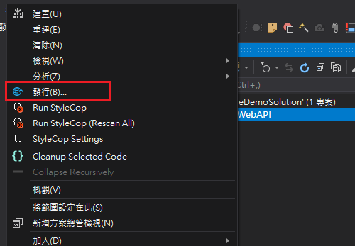範例中我們準備了一個簡單的 Web API 專案(DemoWebAPI),我安裝了 Swashbuckle 套件用來協助我們產生 API 的線上文件。