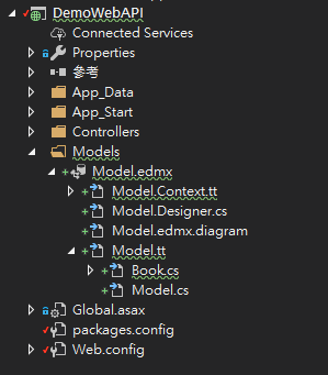 1. 打開先前的範例 Web API,將資料庫加入至專案中。