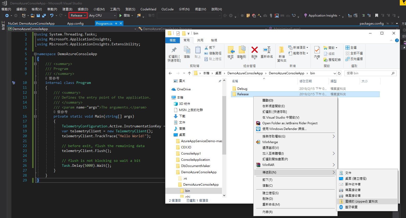 4. 將專案建置起來,並將建置好的專案壓縮成 .zip 資料。
