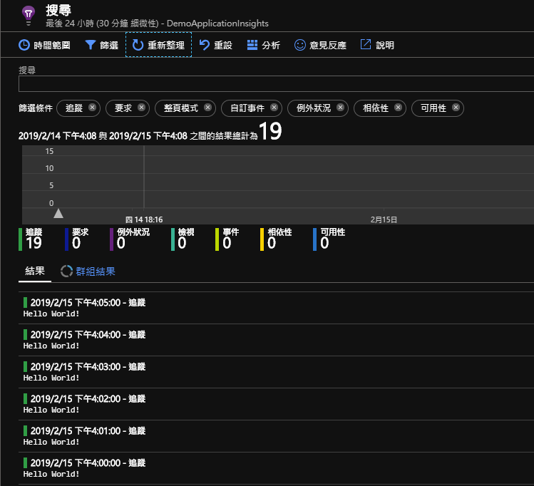 5. 靜待一段時間後,即可在我們的 Application Insights 上看到資訊了。