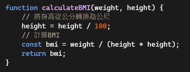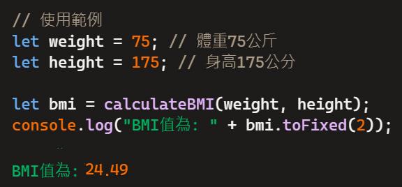 以下則是藉由Javascript來撰寫BMI自訂函數: