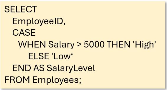 - CASE WHEN:根據條件返回不同結果。