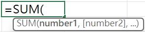 在大家熟悉的Excel應用程式中,函數算是一種工具,是預先定義的公式,可運用於簡化數據資料的處理和運算。在Excel的儲存格裡輸入函數時,通常以等號開頭,緊接著函數名稱和參數。此時畫面會顯示函數語法的提示,例如:輸入SUM函數時,會顯示: