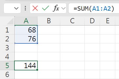 其中,SUM是函數名稱,A1及B1則是此函數裡的兩個參數。這兩個參數都是儲存格位址,因此,此SUM函數的執行結果將傳回儲存格A1的內容值與儲存格B1的內容值之加總結果。