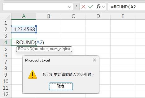 將會有[您已針對此函數輸入太少引數。]的警示訊息。