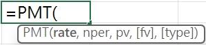 - 第4個參數fv原意為「未來值」(Future Value),指的是在最後一次付款或投資後所希望達到的金額。以此範例而言,最後一次償款本利後,就是0(還清了,已不再欠款),所以就省略不用輸入了(未輸入此參數即預設為0)。