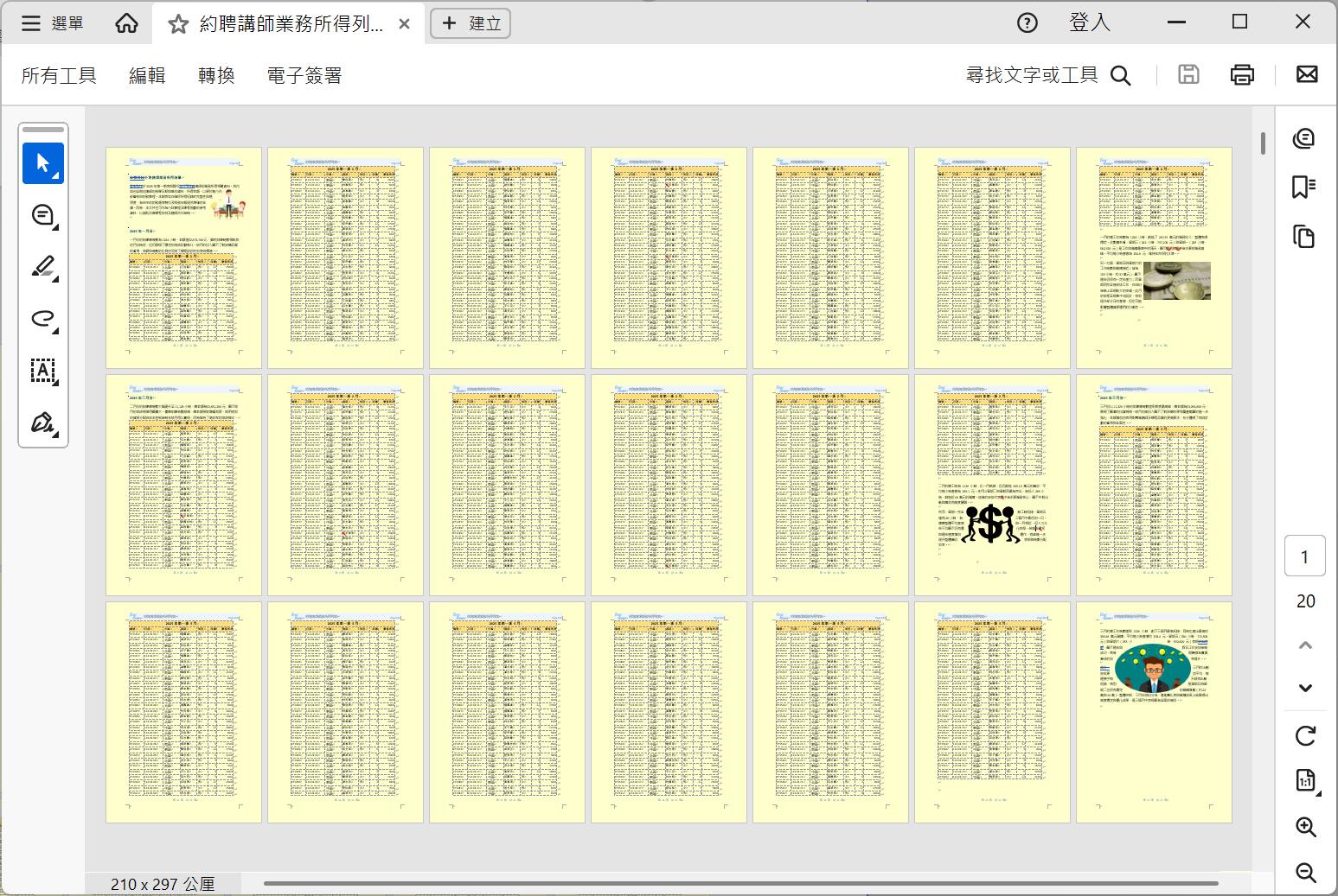 接著就為您實際演練另一個PDF檔案匯入與解析的情境。檔案名稱為 - 全泉科技外聘講師業務所得清單.pdf,總共有20頁。此檔案描述著2025年第一季的外聘講師業務所得清單,每一個月份都是結構相同的表格資料,但表格有標題以及跨頁的情形。