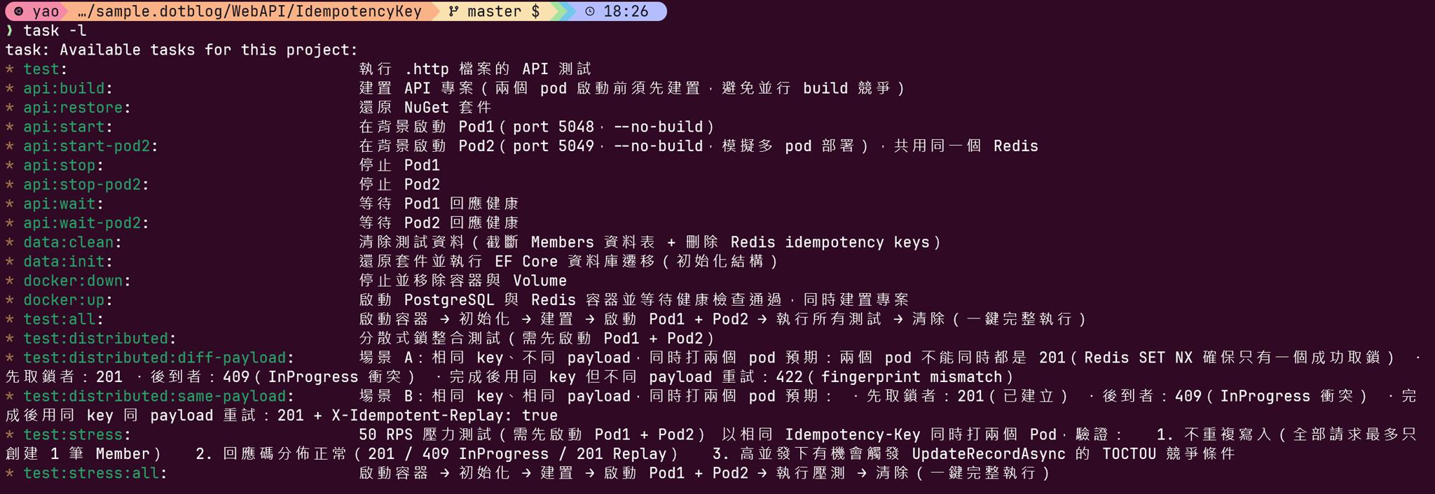 我採用 taskfile 啟動多個 web api 進行測試
